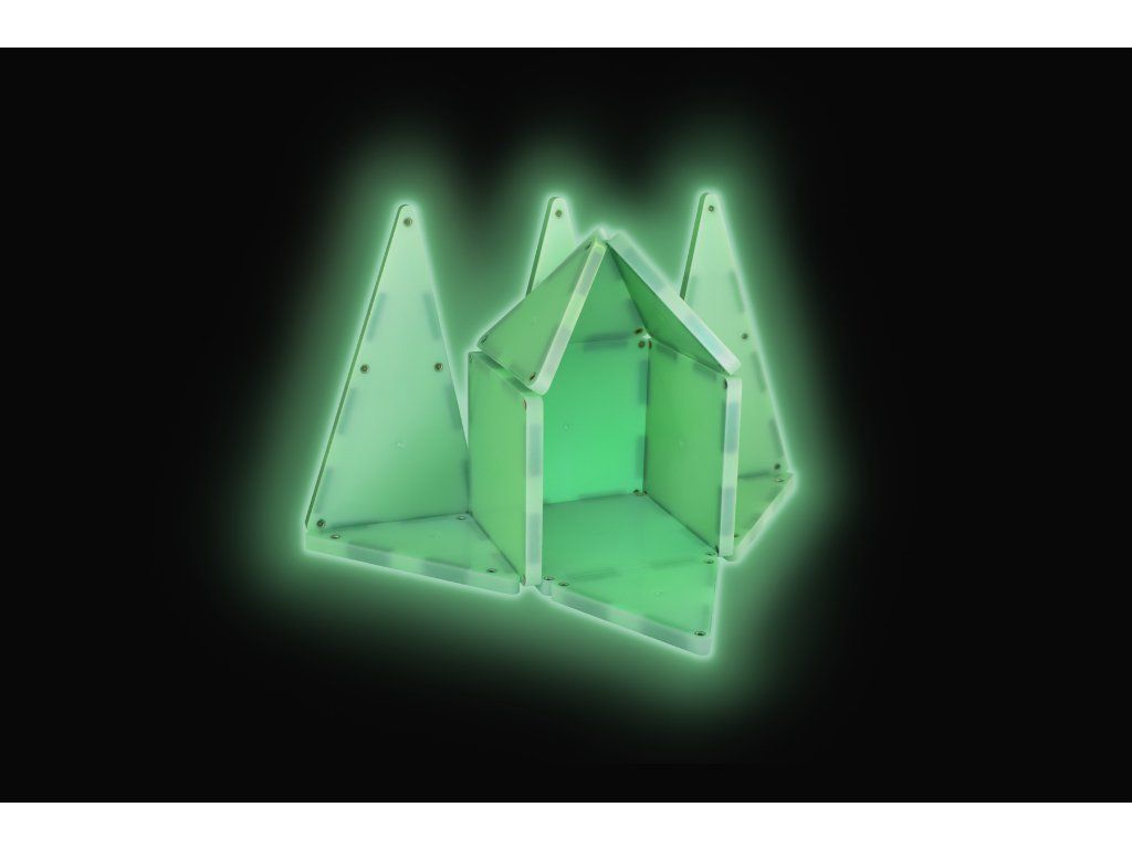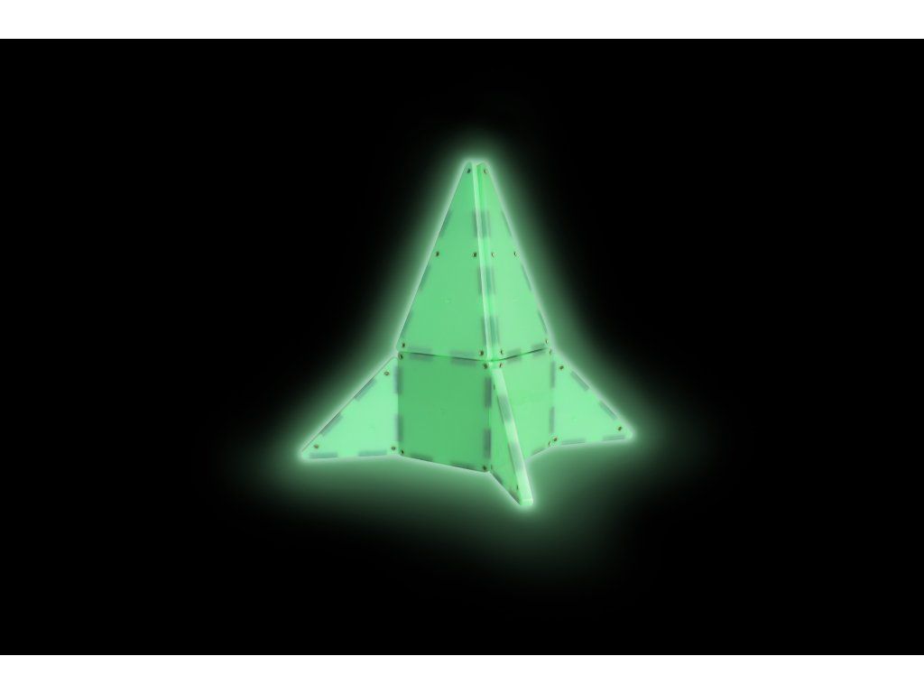 S jedinečnými svítícími magnetickými dílky vytvoříte svítící hrady či rakety. Sada obsahuje dílky, které svítí ve tmě a představují zábavný a originální doplněk k existujícím sadám MAGNA-TILES. Svítící vlastnost magnetických dílků se aktivuje při přímém kontaktu se slunečním světlem nebo pomocí světla z přiloženého zdroje. Jak to funguje? Dílky obsahují fosfor, bezpečný a přirozeně se vyskytující minerál, který po nabití energií vyzařuje světlo.