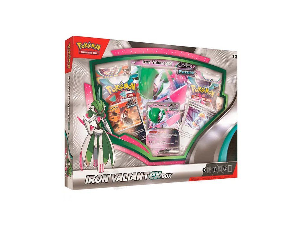Pokémon Iron Valiant ex Box je speciální dárkové balení hry Pokémon TCG. Získejte promo karty Iron Valiant ex, Iron Moth a Future Booster Energy Capsule, velkou Jumbo kartu Iron Valiant ex a 4 booster balíčky. Pokud hledáte box, ve kterém máte zaručené karty létajícího, vílího Pokémona, je tento pro vás ten pravý.