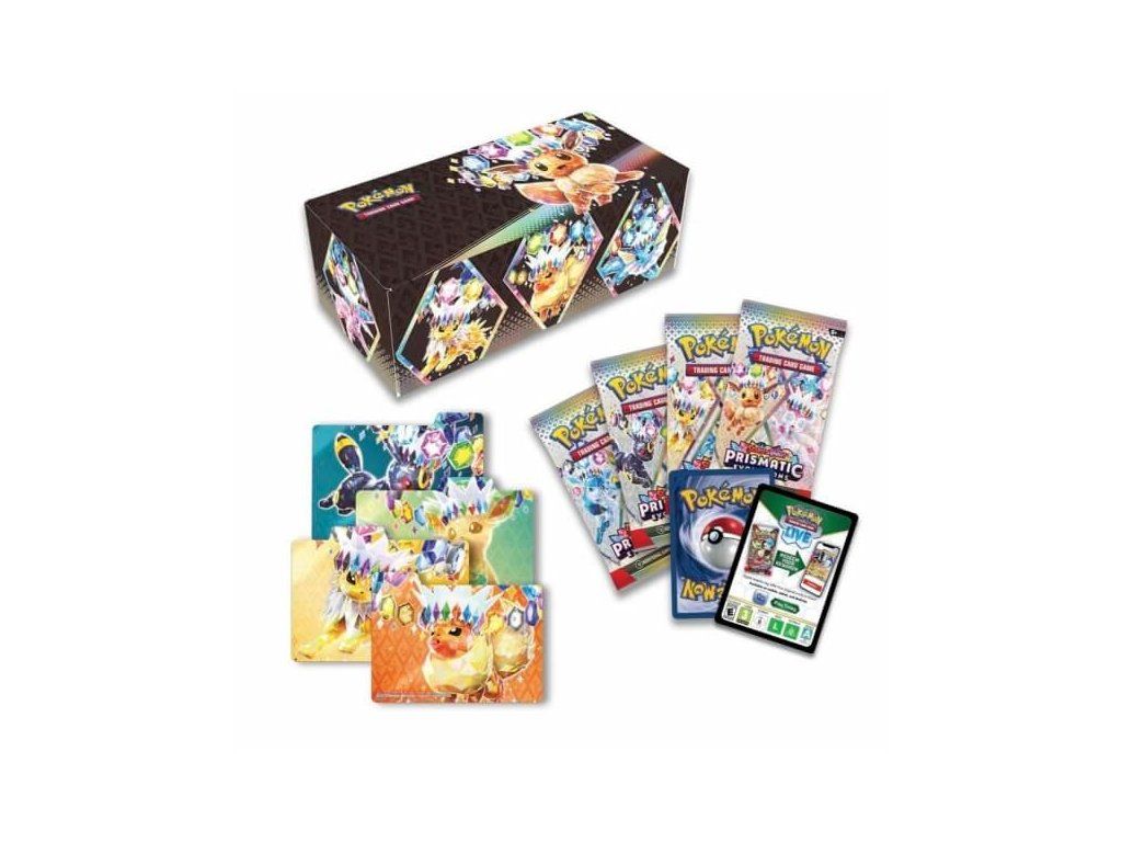 Pokémon Prismatic Evolutions Surprise Box je prémiové balení 4 boosterů edice Prismatic Evolutions a jednu náhodnou kartu Tera ex Eevee evoluce.